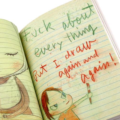 ノートの切れ端や封筒、ポストカードなどに描かれた絵と文字がすべて一体となった作品たちは、飛び出しそうなほど力強いパンキッシュな作品から、キュンと切なくなるような作品まで多数収録されています。Tシャツなどの奈良美智グッズのモチーフとしてもよく見かける作品もあるので、グッズを持っている人は是非探してみて下さいね。ラムフロムグッズもあるかも?