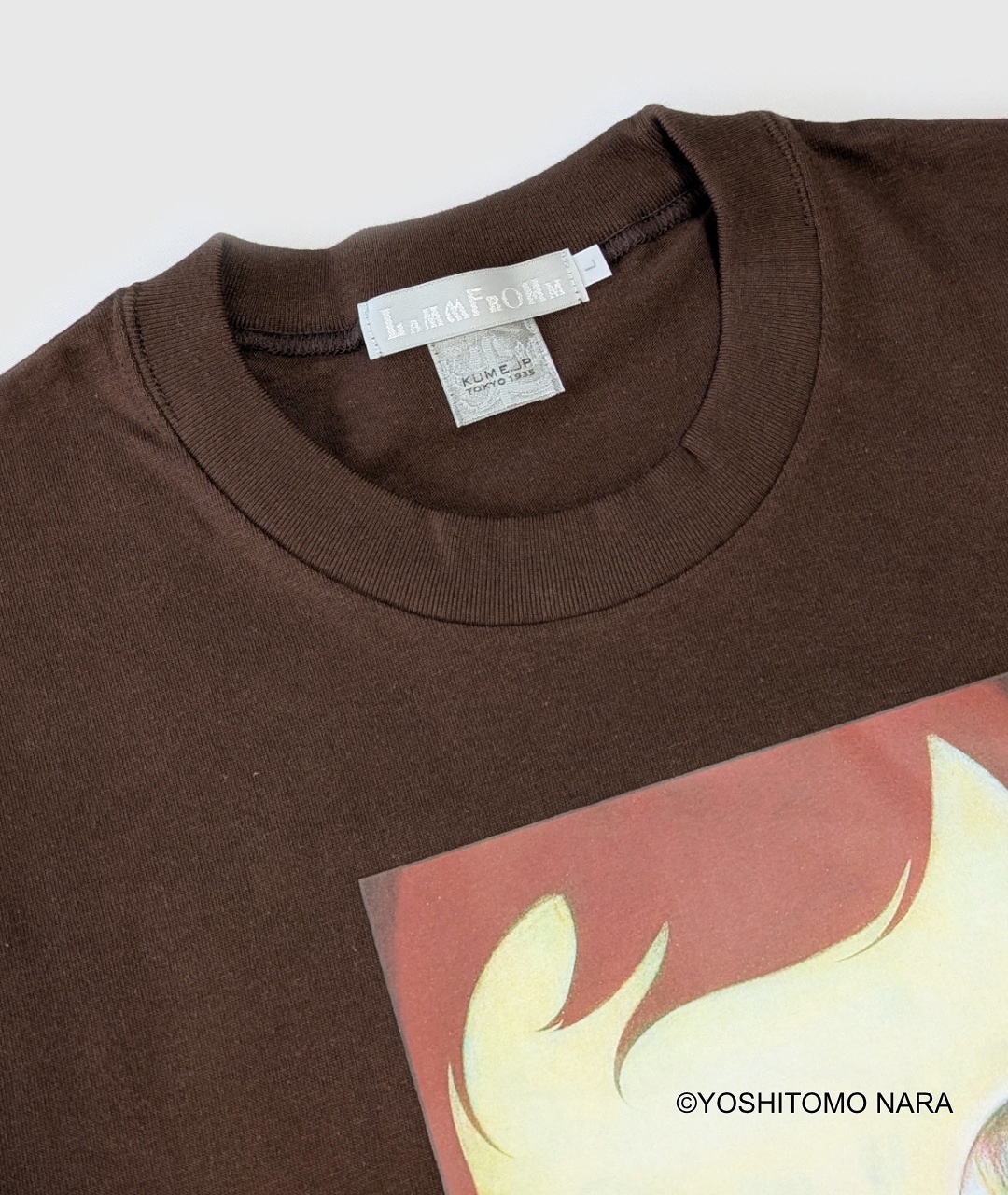 奈良美智とも親交の深い、ドイツを拠点に活動しているサーフロックバンド「TIKI TIKI BAMBooooS(チキチキ・バンブース)」のミニアルバム『cloudy,later fine』(ラムフロムにて好評販売中)のジャケットにも採用されている、2005年の横浜トリエンナーレで発表された奈良美智作品をモチーフにしたこちらの奈良美智Tシャツは、発売以来、ラムフロムのロングセラーとなっている人気のアートTシャツです。