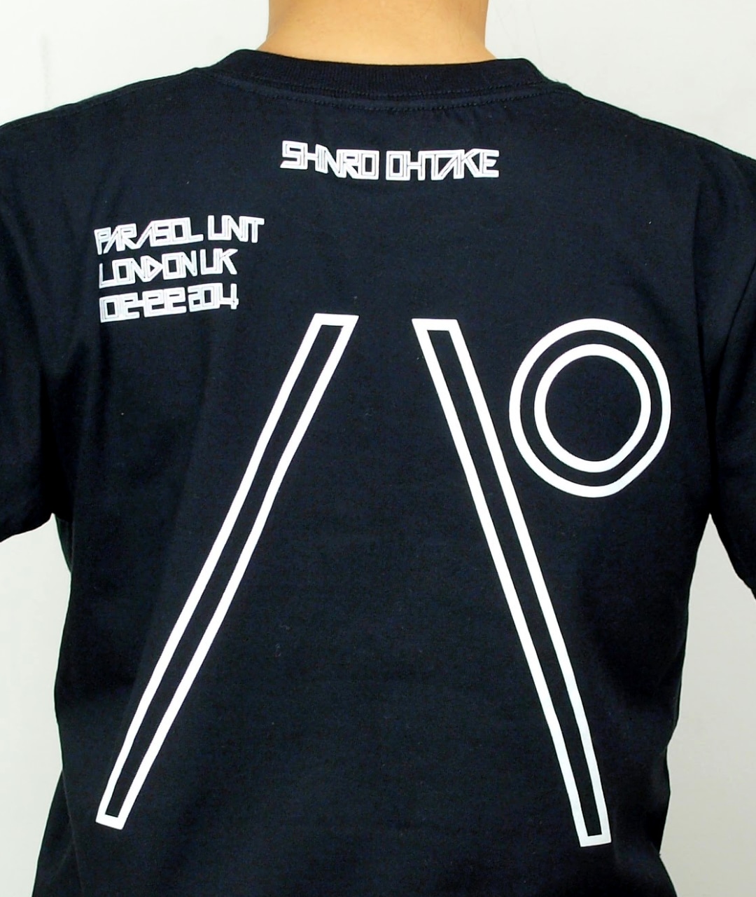 「パラソルユニット Tシャツ」は、ロンドンのParasol unit foundationにて2014年10月12日から12月12日まで開催中の大竹伸朗個展『Shinro Ohtake』にあわせて製作された、大竹伸朗の人気フォントTシャツの新作です。ネオン管を思わせる細長いフォントで、表側には開催地である「ロンドン」の文字が、裏側には開催場所のParasol unit foundationからとった「パ」の文字がプリントされています。