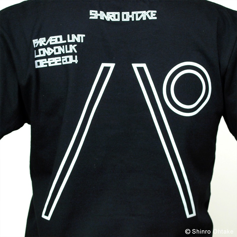「パラソルユニット Tシャツ」は、ロンドンのParasol unit foundationにて2014年10月12日から12月12日まで開催中の大竹伸朗個展『Shinro Ohtake』にあわせて製作された、大竹伸朗の人気フォントTシャツの新作です。ネオン管を思わせる細長いフォントで、表側には開催地である「ロンドン」の文字が、裏側には開催場所のParasol unit foundationからとった「パ」の文字がプリントされています。