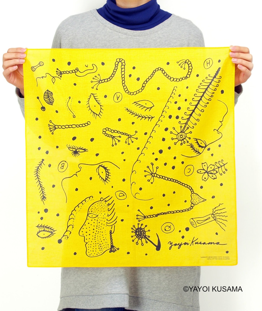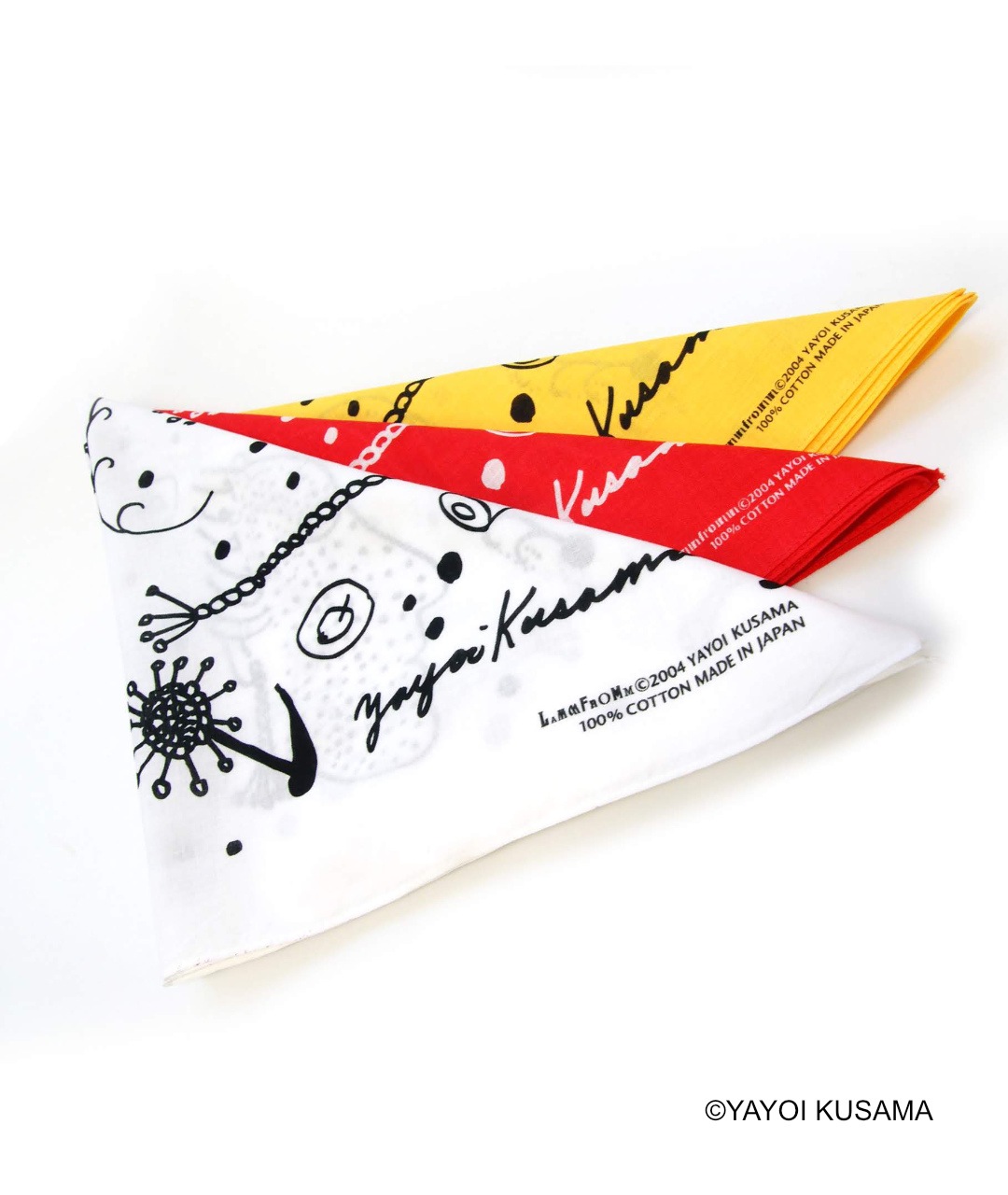 そんな草間彌生描き下ろしの貴重なドローイングをモチーフに、ラムフロムがデザインから製作までを手がけたバンダナは、今でも人気の高いアイテムです。”アートを日常にさりげなく取り入れたい”という方に人気のこの草間彌生バンダナは、自分用は勿論のこと、お手頃価格のプチギフトとしても人気があります。