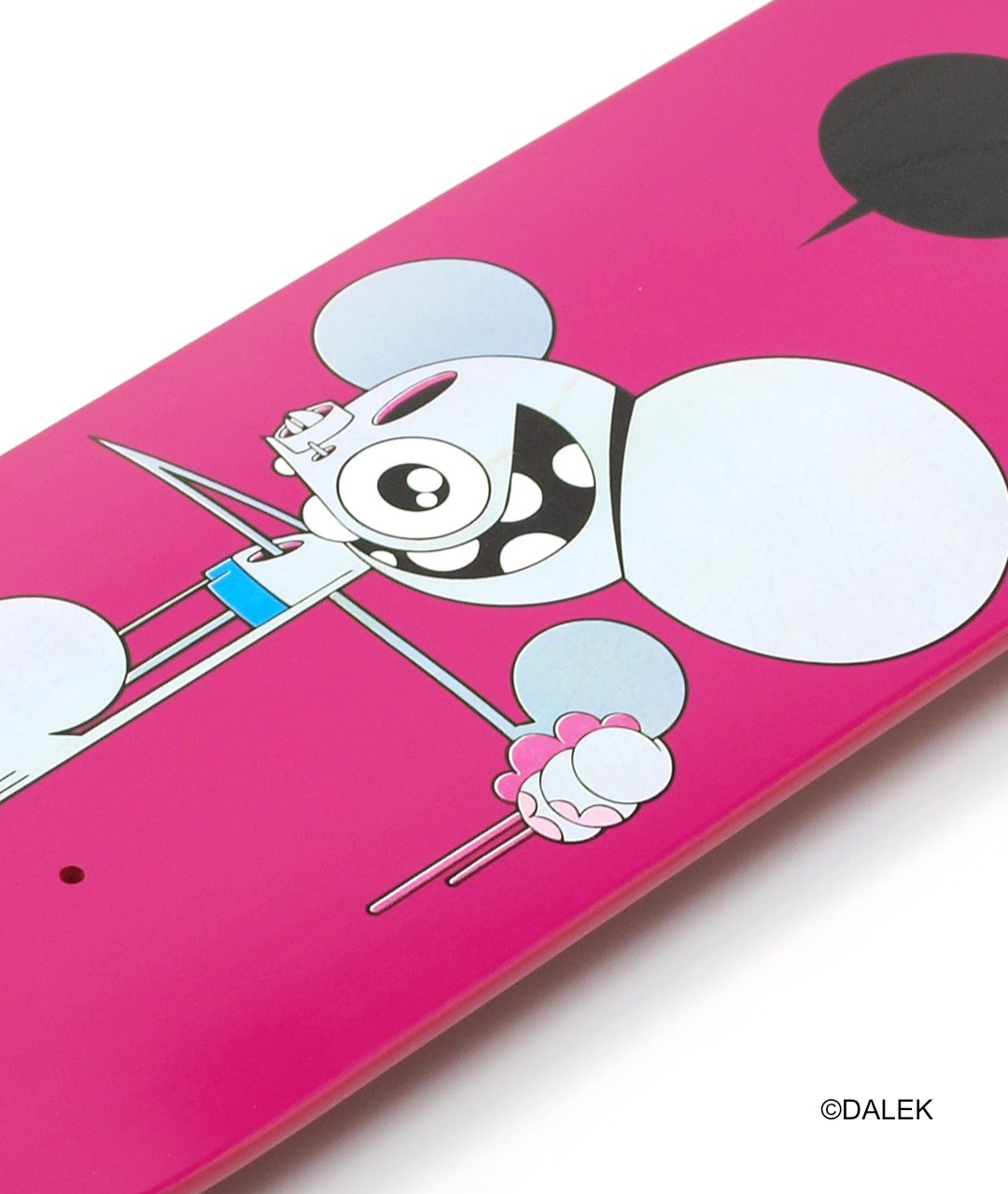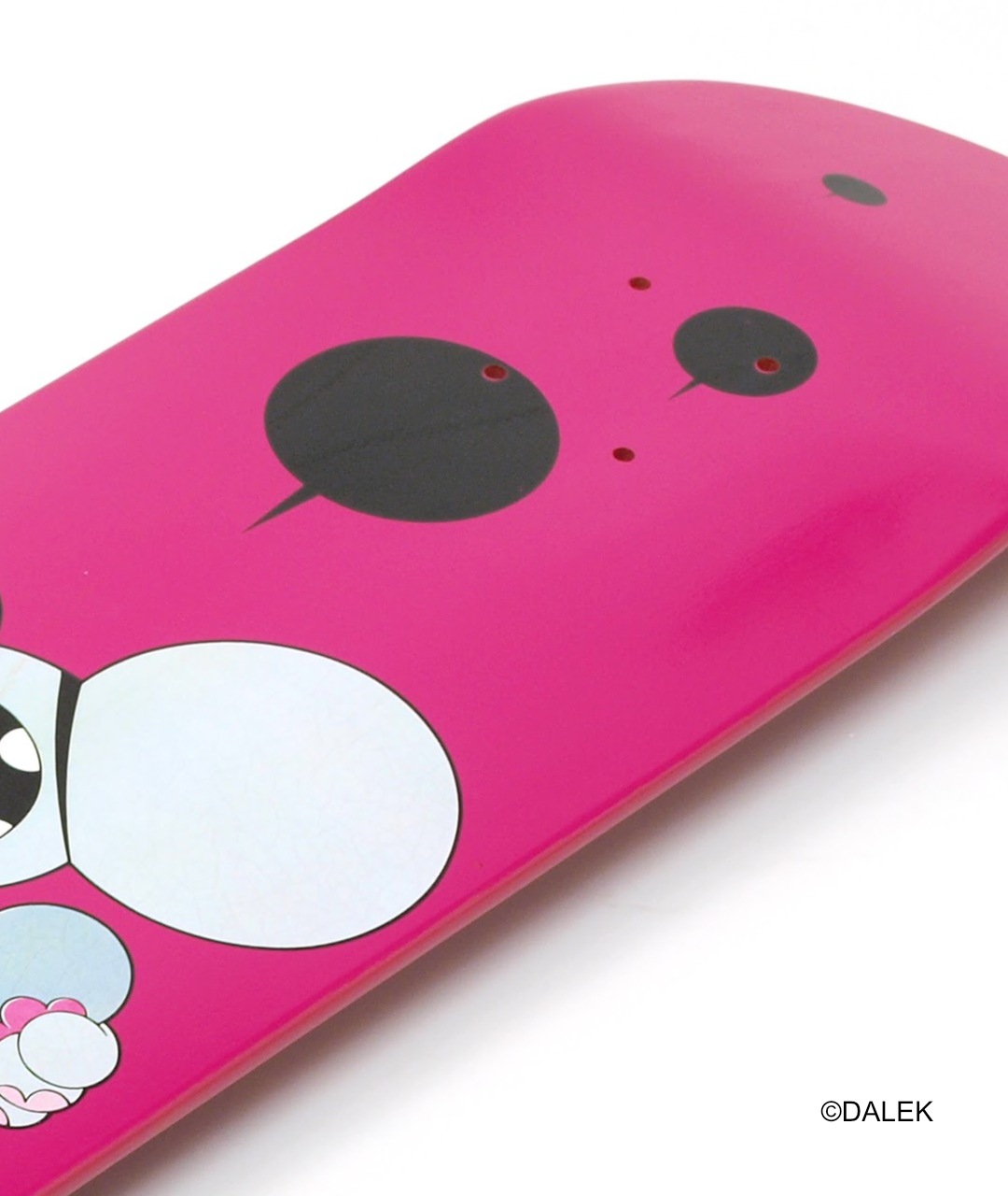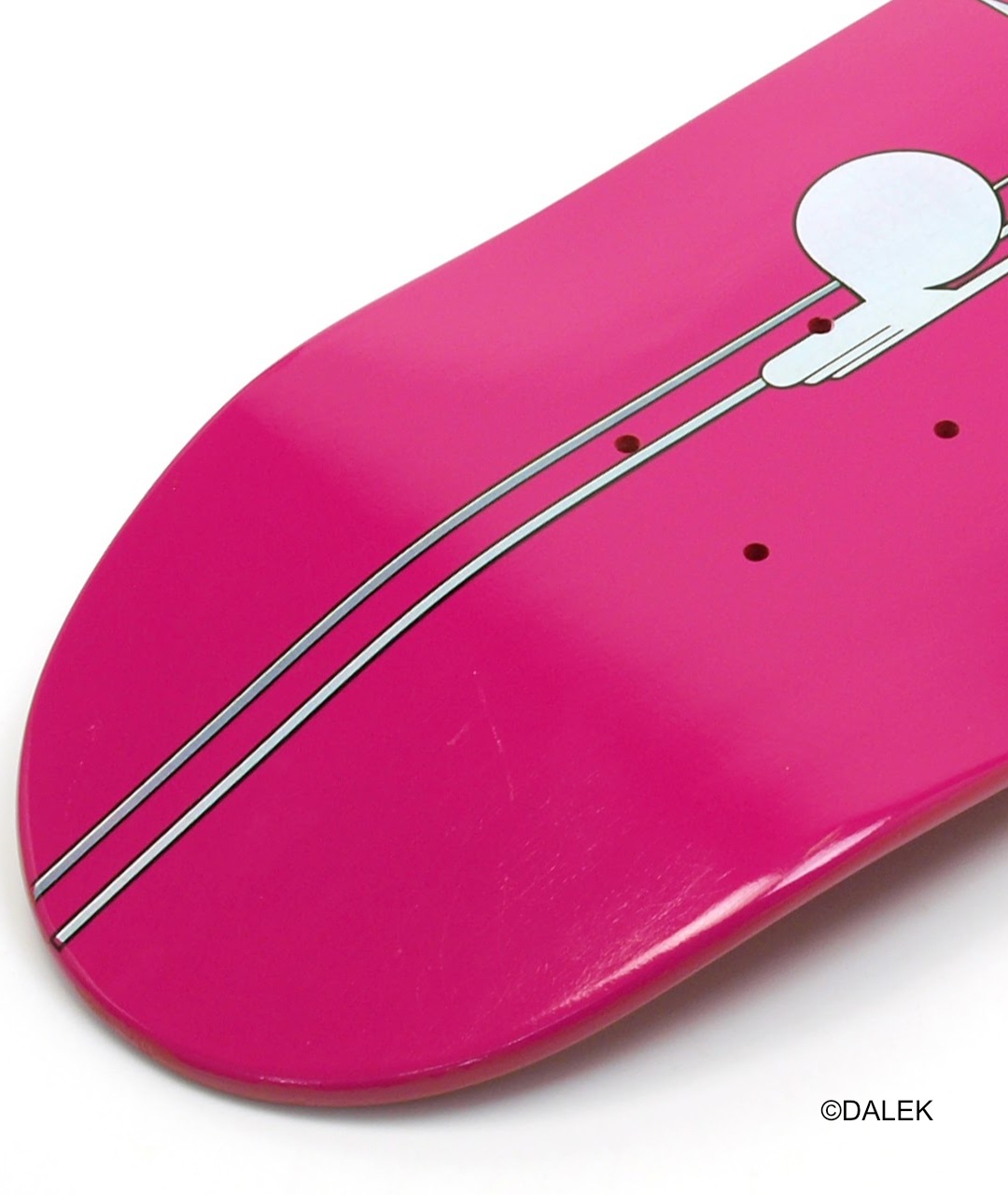 グラフィティアート界の寵児とも呼ばれる、グラフィティアーティストのダレク(DALEK)ことジェームズ・マーシャル(James Marshall)が、幼少期に大工の真似をして投げた木の食いが頭に刺さった体験を通じて生み出されたというキャラクター「スペースモンキー(Space Monkey)」をモチーフにデザインされたスケードボードデッキシリーズです。色鮮やかで未来的なデザインのスケードボードデッキは、インテリアとしてお部屋に飾っても素敵なアイテムです♪