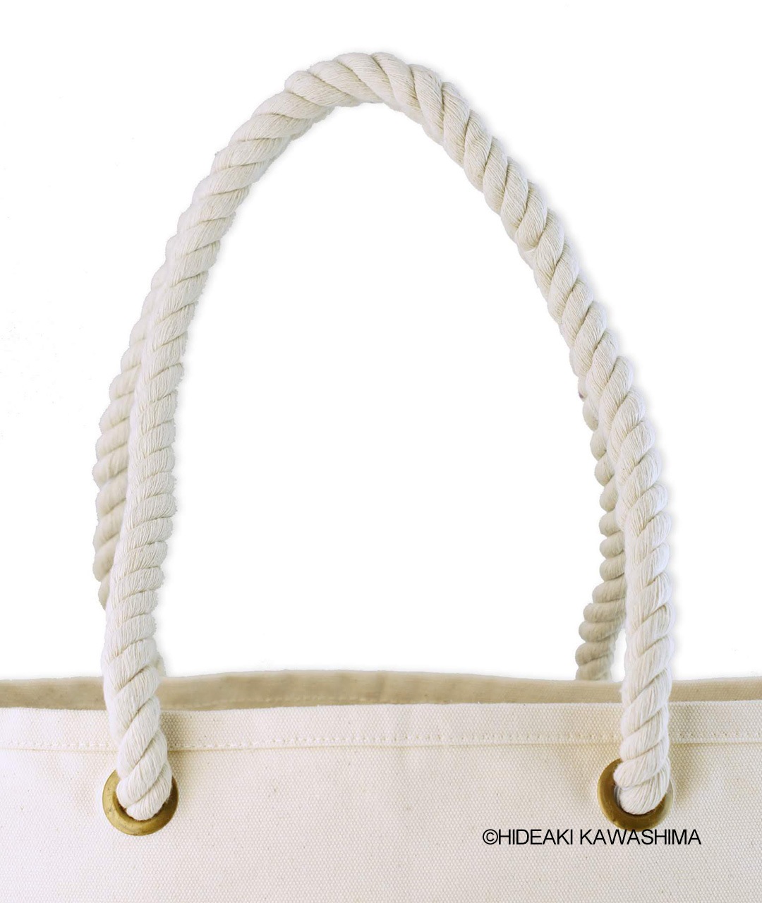 触り心地も良いロープ状のハンドル部分は、太くてしっかりしているので、やや重めの荷物を入れて肩にかけても苦になりません。お買い物用バッグとしてはもちろんのこと、リラックス感ある絵がとっても可愛いので、本やブランケットなどを入れてソファの側やベッドの側に置いておくお部屋用バッグとして使うのもおすすめです♪