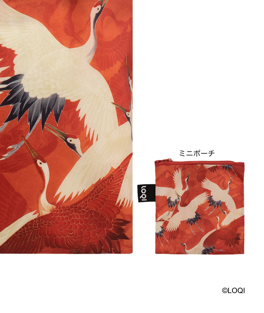 LOQI ミュージアムコレクションシリーズより、アムステルダム国立美術館所蔵作品「Woman’ s Haori with White and Red Cranes(作者未詳)」をモチーフにしたエコバッグです。