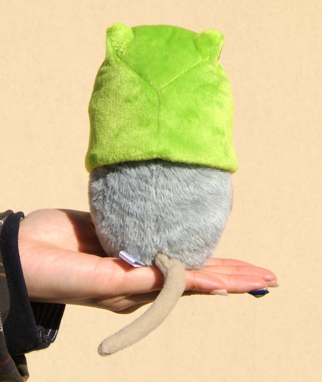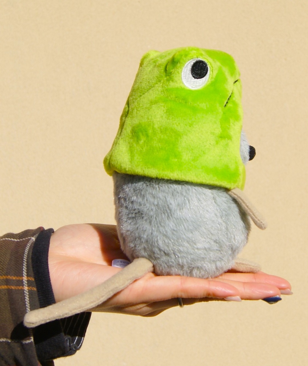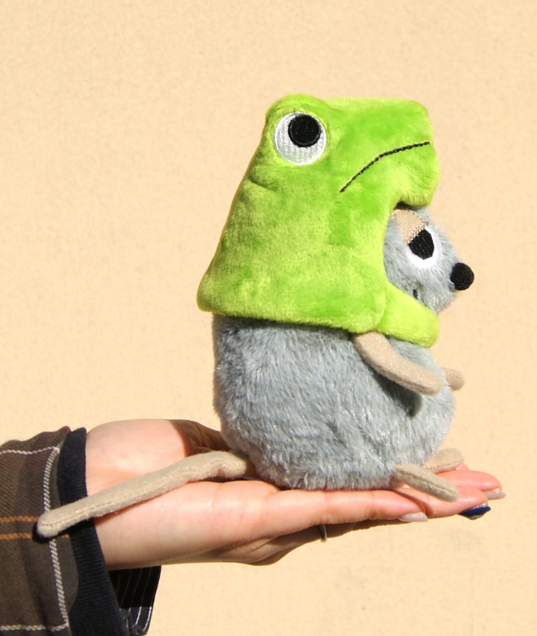 こちらはその主人公フレデリックが、レオ・レオニ絵本「ぼくのだ!わたしのよ!」に登場するカエルの被り物を被っている「フレデリック変身ぬいぐるみ」です(被り物は取り外しが可能)。絵本に出てくるフレデリックとはまたちょっと違う、可愛さ溢れる”コスプレイヤーなフレデリックぬいぐるみ”です。