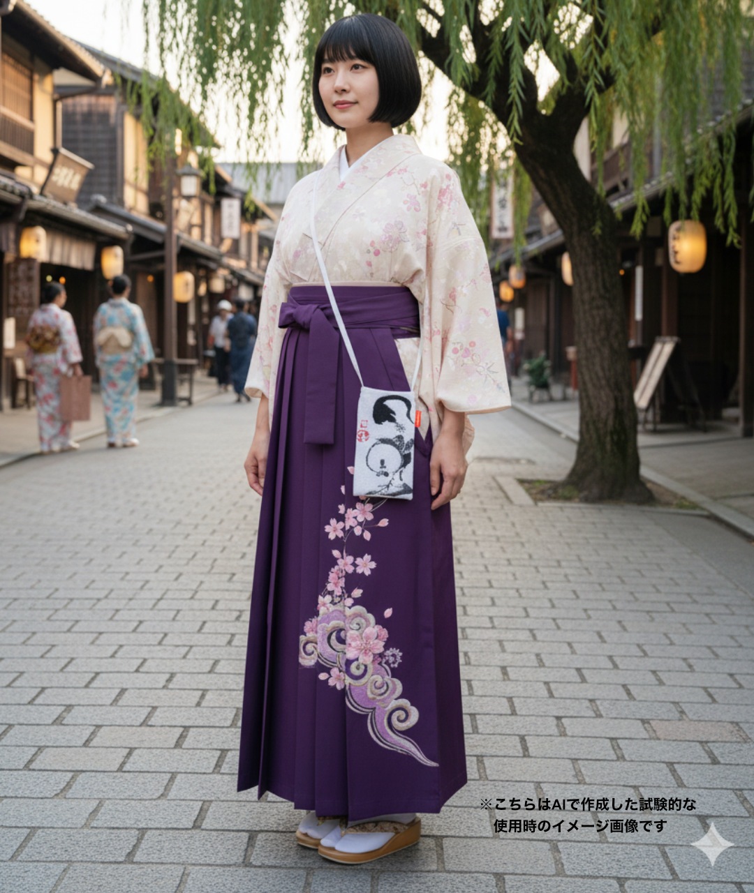 サコッシュは、ちょっとしたお出かけやお買い物に行くのに便利なミニショルダーバッグです(外側にカードサイズのポケットがあります)。また美術ファンの方にとっても、展覧会に行った際のチケット入れとして使ったり、最近増えている”写真撮影OKな展覧会”の会場で、スマホを静かにサッと出し入れできるミニバッグとして使えるので、とても便利で重宝しますよ♪