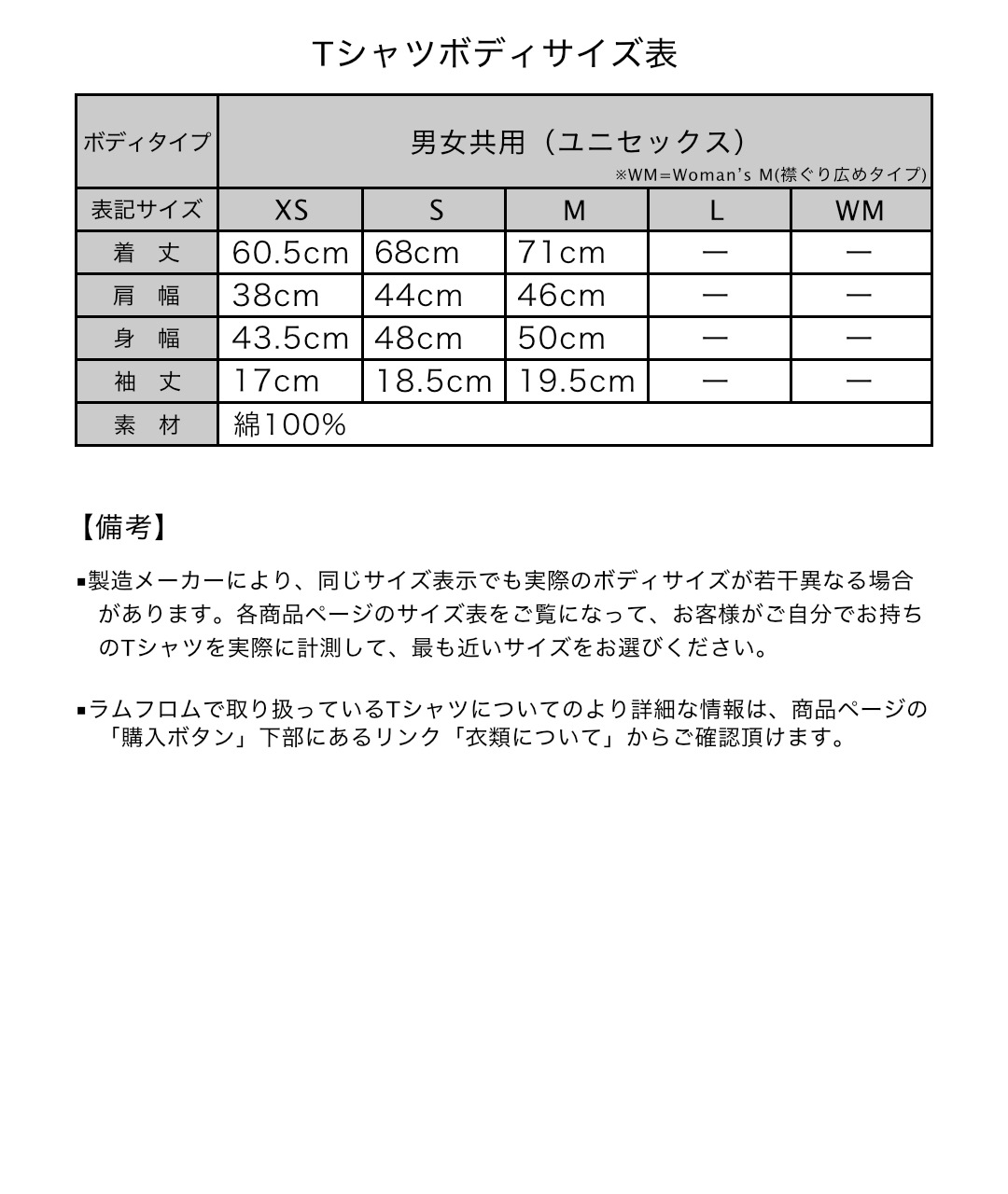 ※「Tシャツのサイズ表・取扱いについての詳細」は、商品画像リスト内にてご確認頂けます